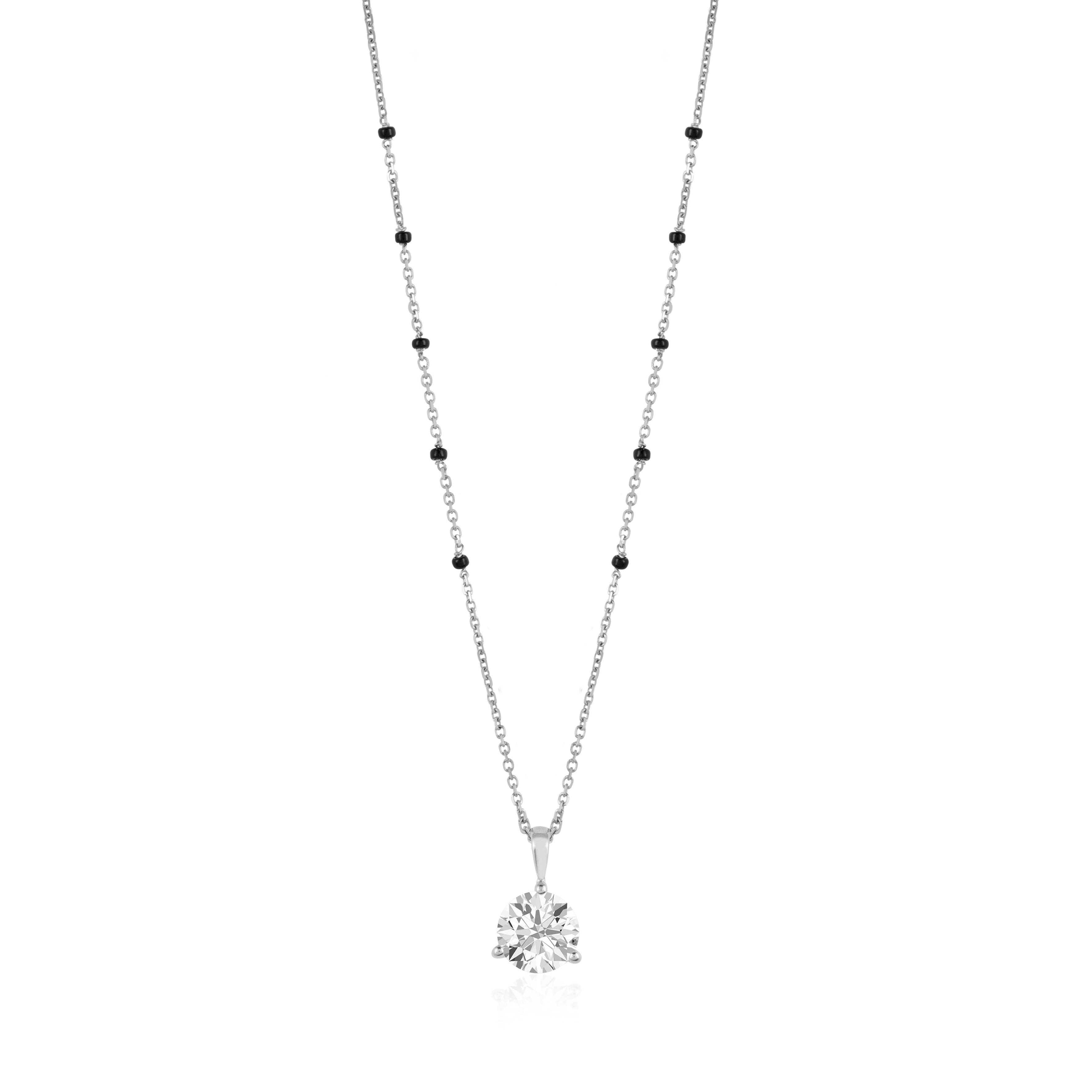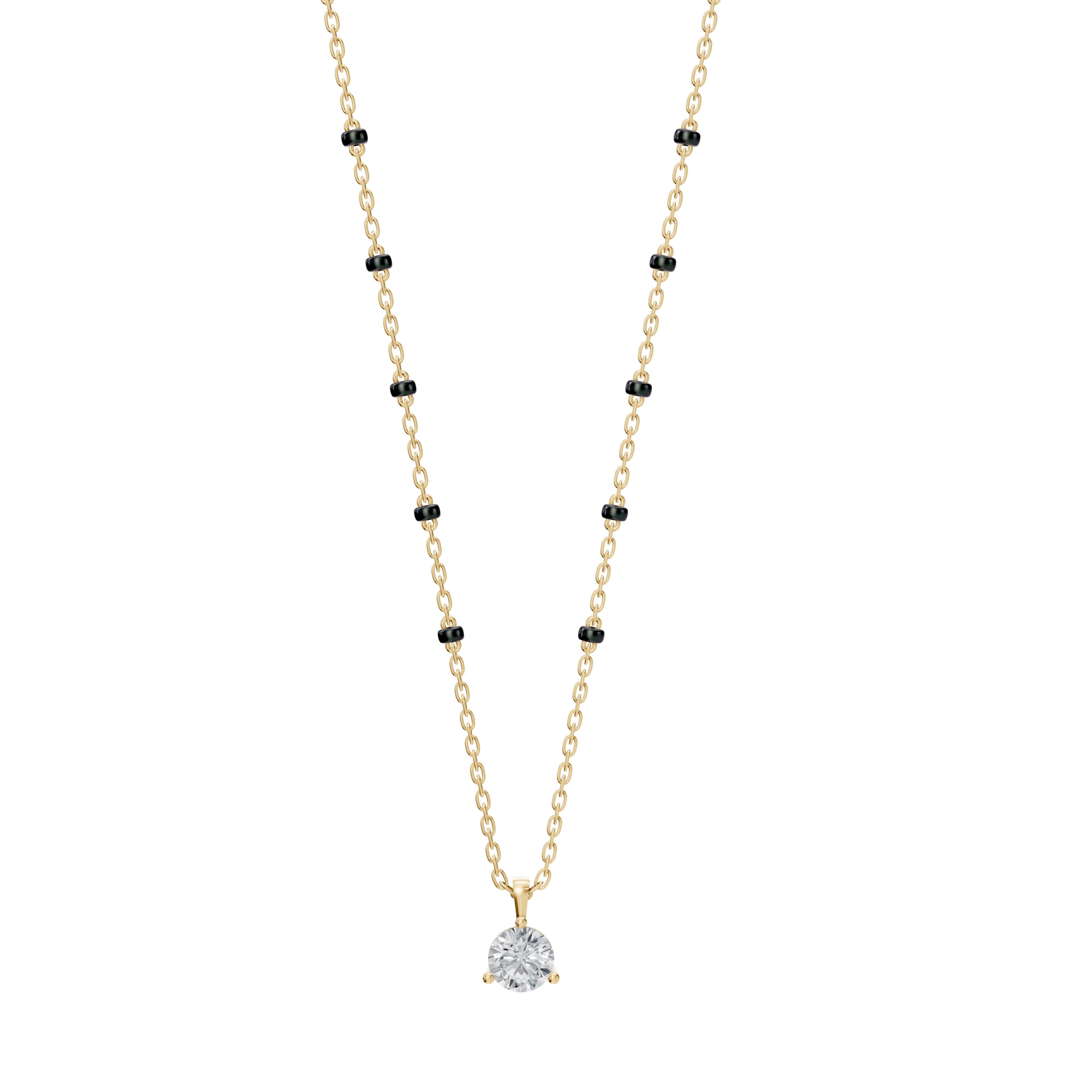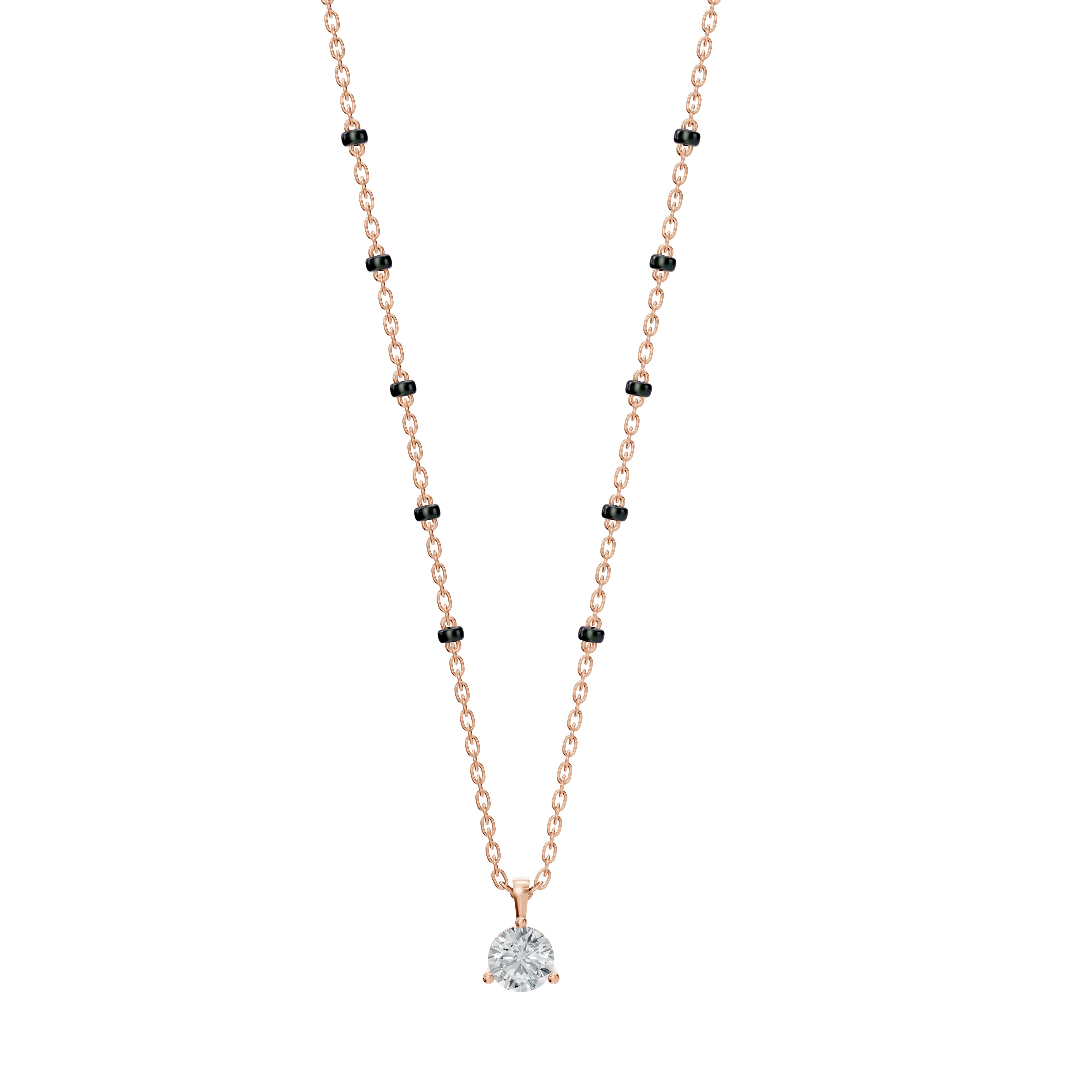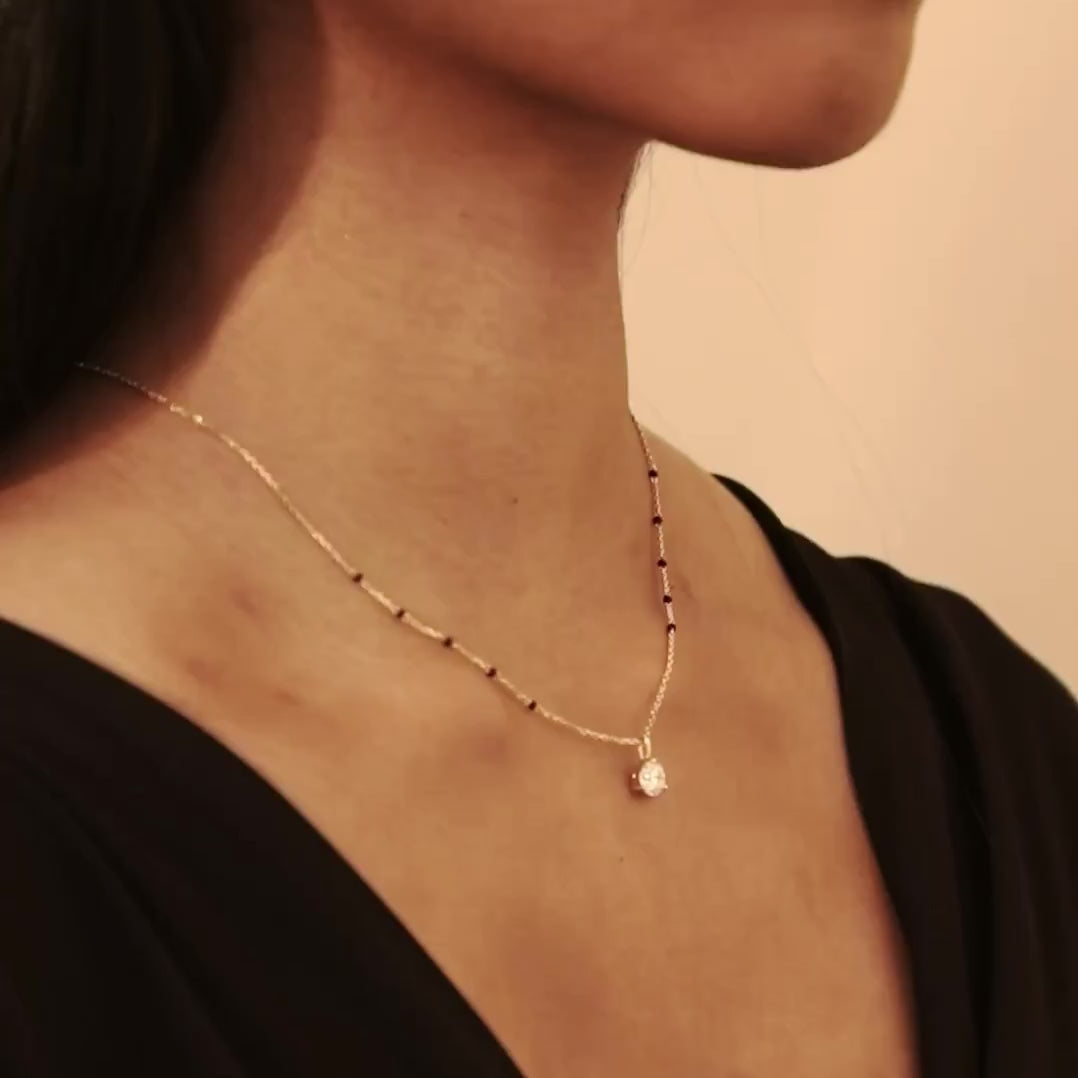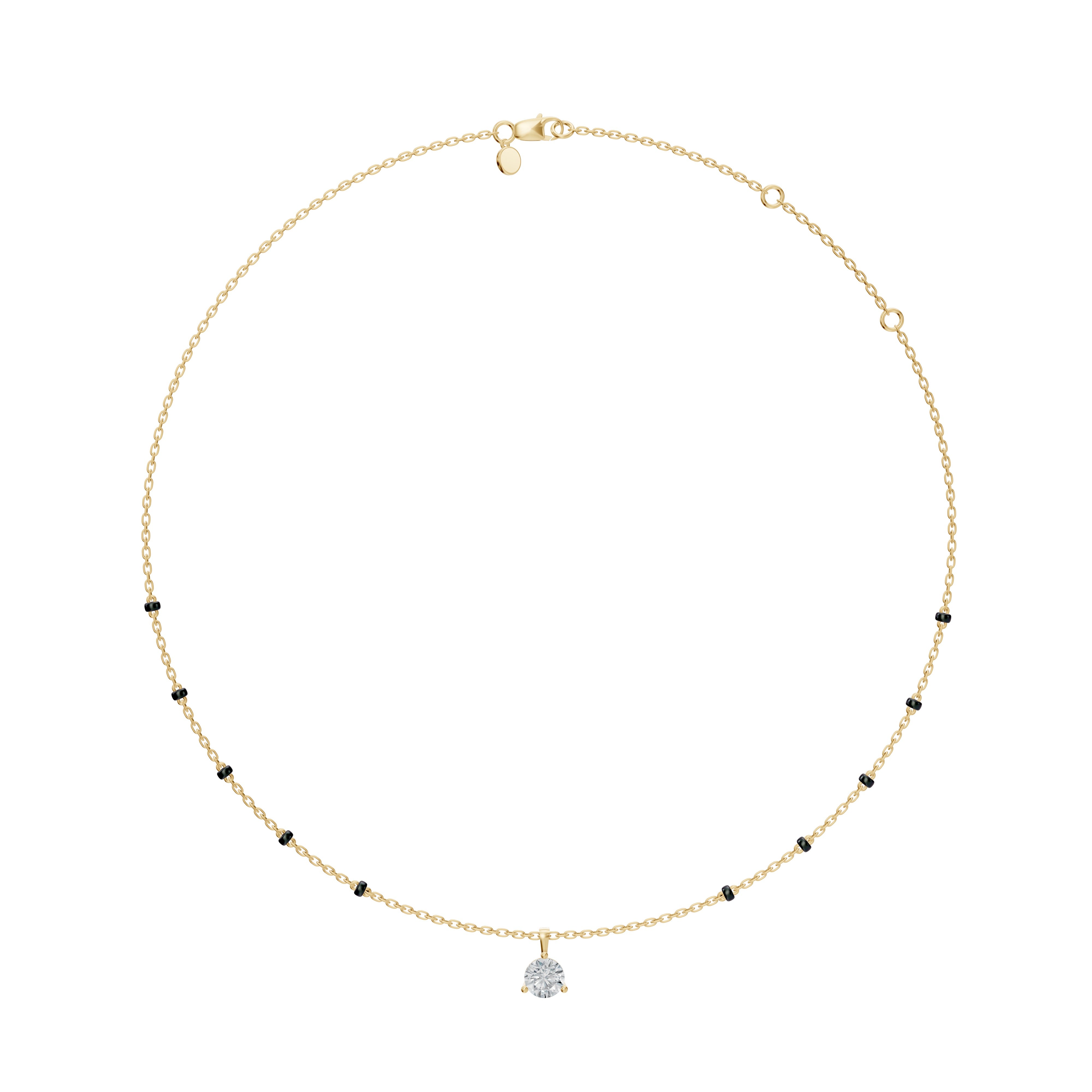 Step up your style game with the Malini Mangalsutra, where classic tradition meets sleek modern design. This piece features a round brilliant certified lab-grown diamond, available in various carat sizes and grades, set in a versatile bail pendant for effortless customization.