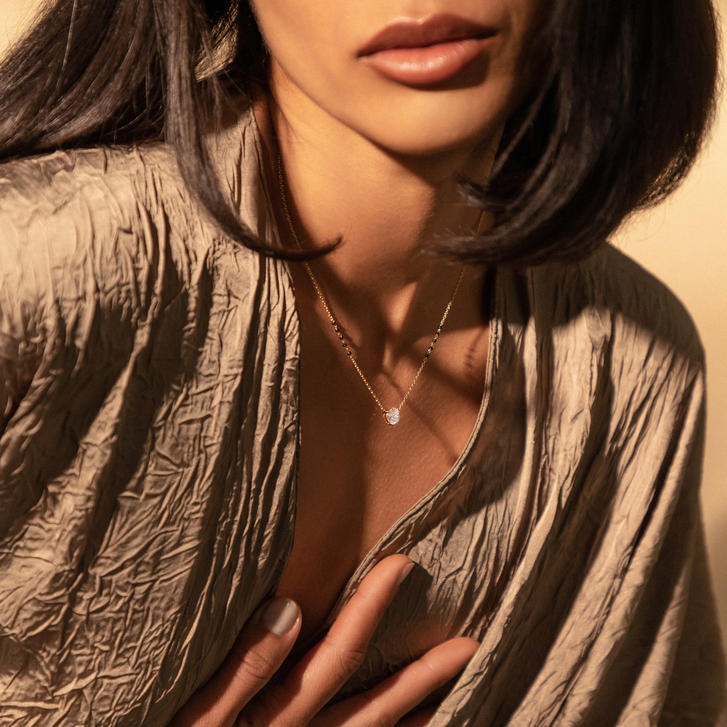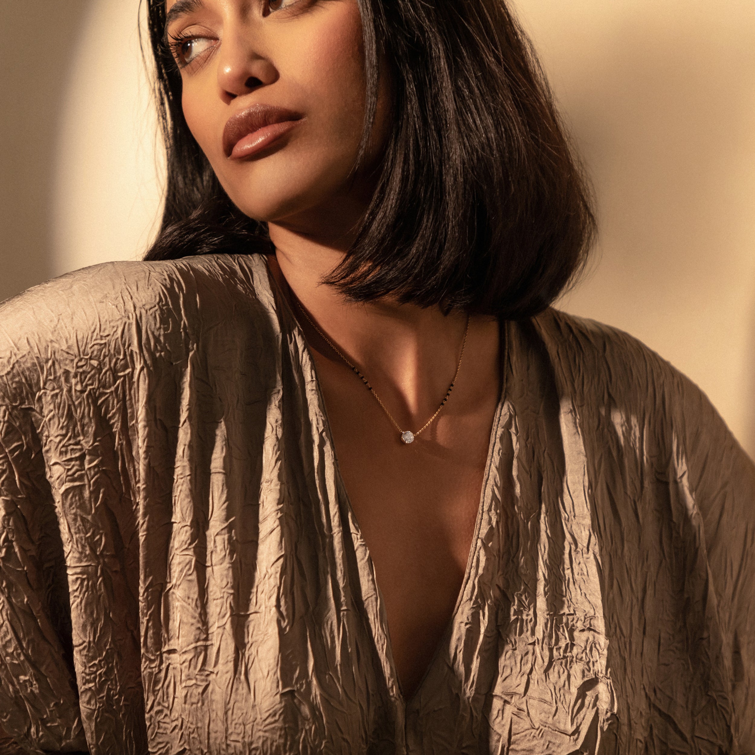 - This style features a fixed pendant design, perfect for those who prefer a polished, consistent look, this design keeps the pendant securely in place. It’s ideal for anyone who wants a timeless, no-fuss style that stays beautifully centered, every time you wear it.