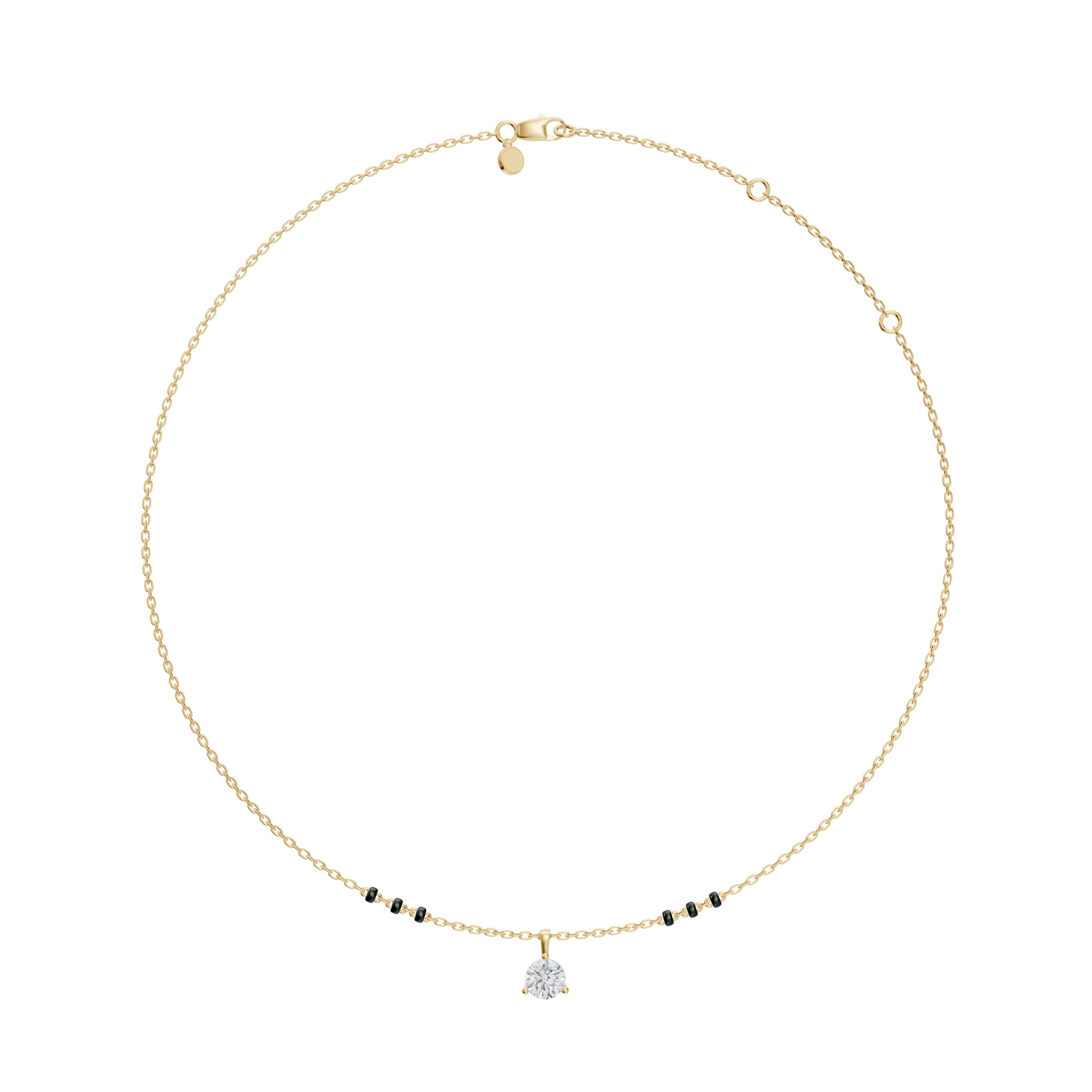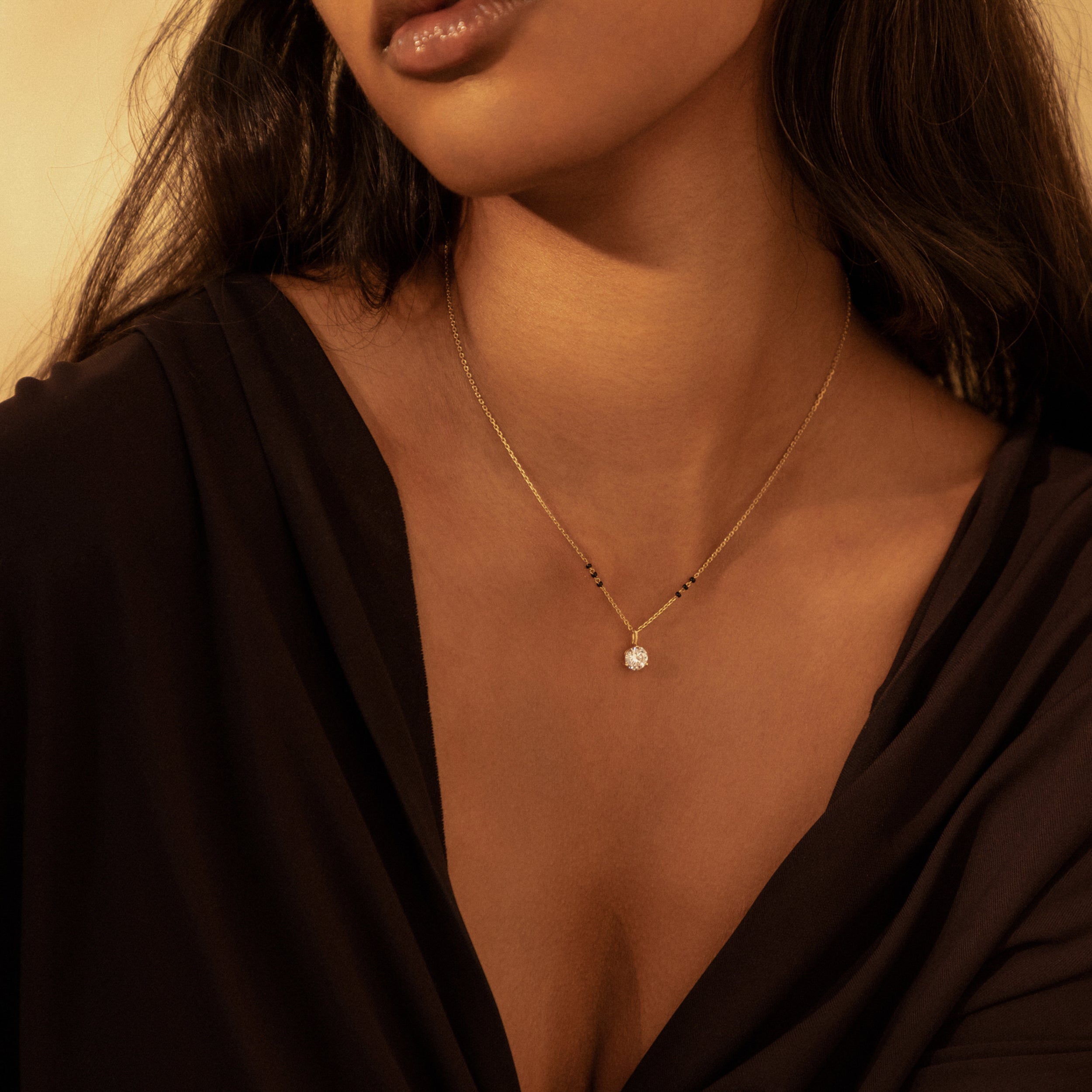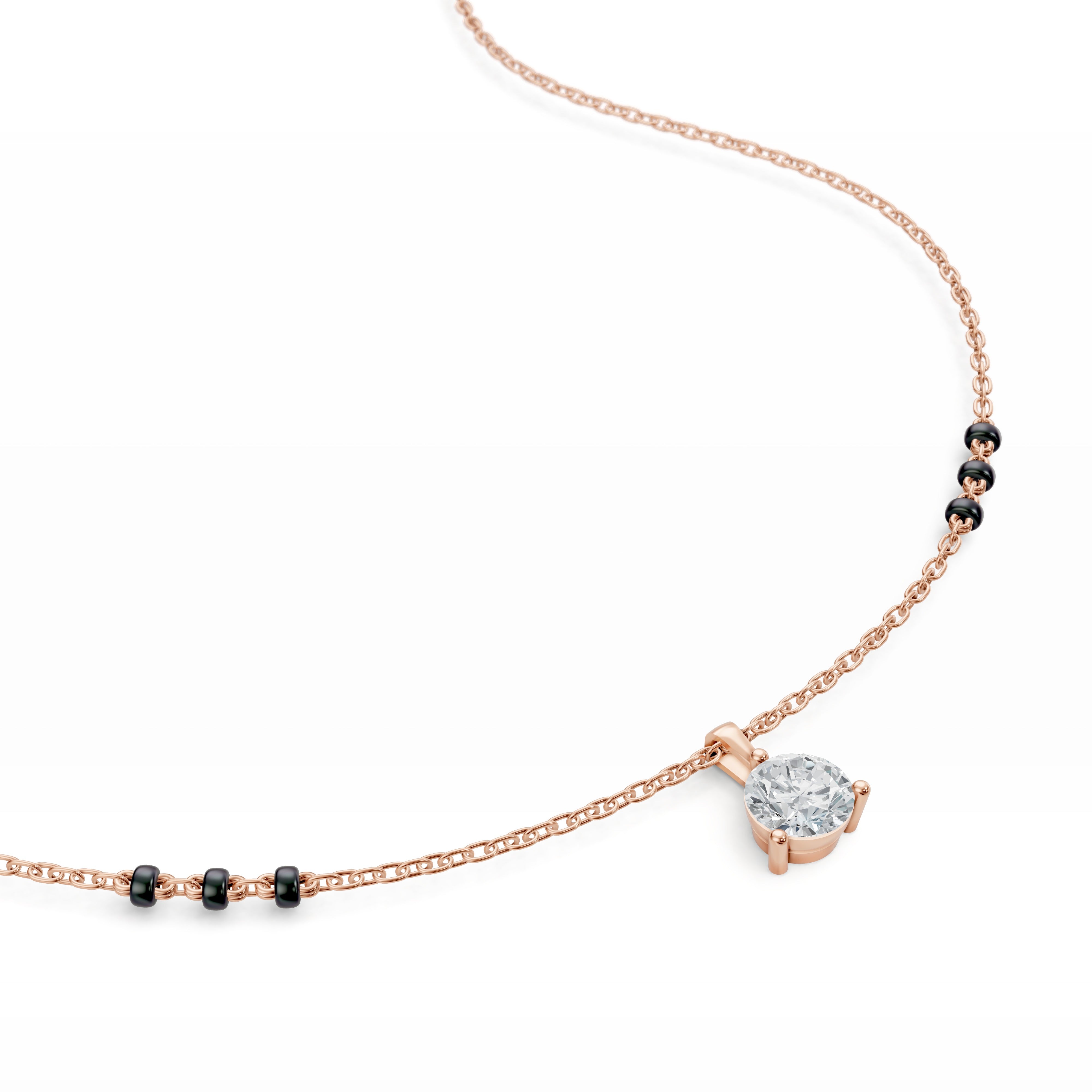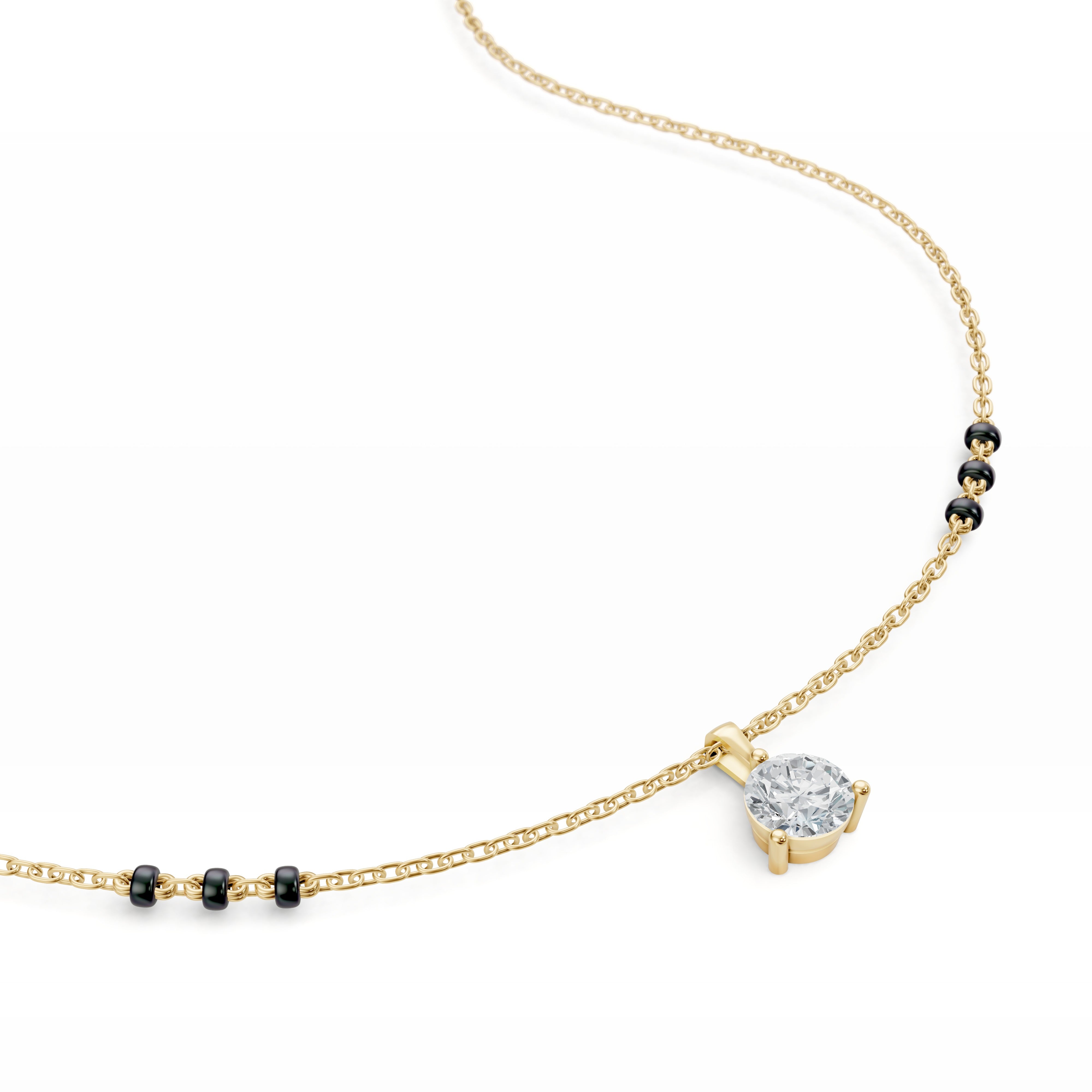Unveil the essence of elegance with the Sohini Mangalsutra, where classic heritage meets cutting-edge style. Featuring a dazzling round brilliant certified lab-grown diamond nestled in a bail pendant, this piece offers a range of sizes and grades for a truly customized experience.