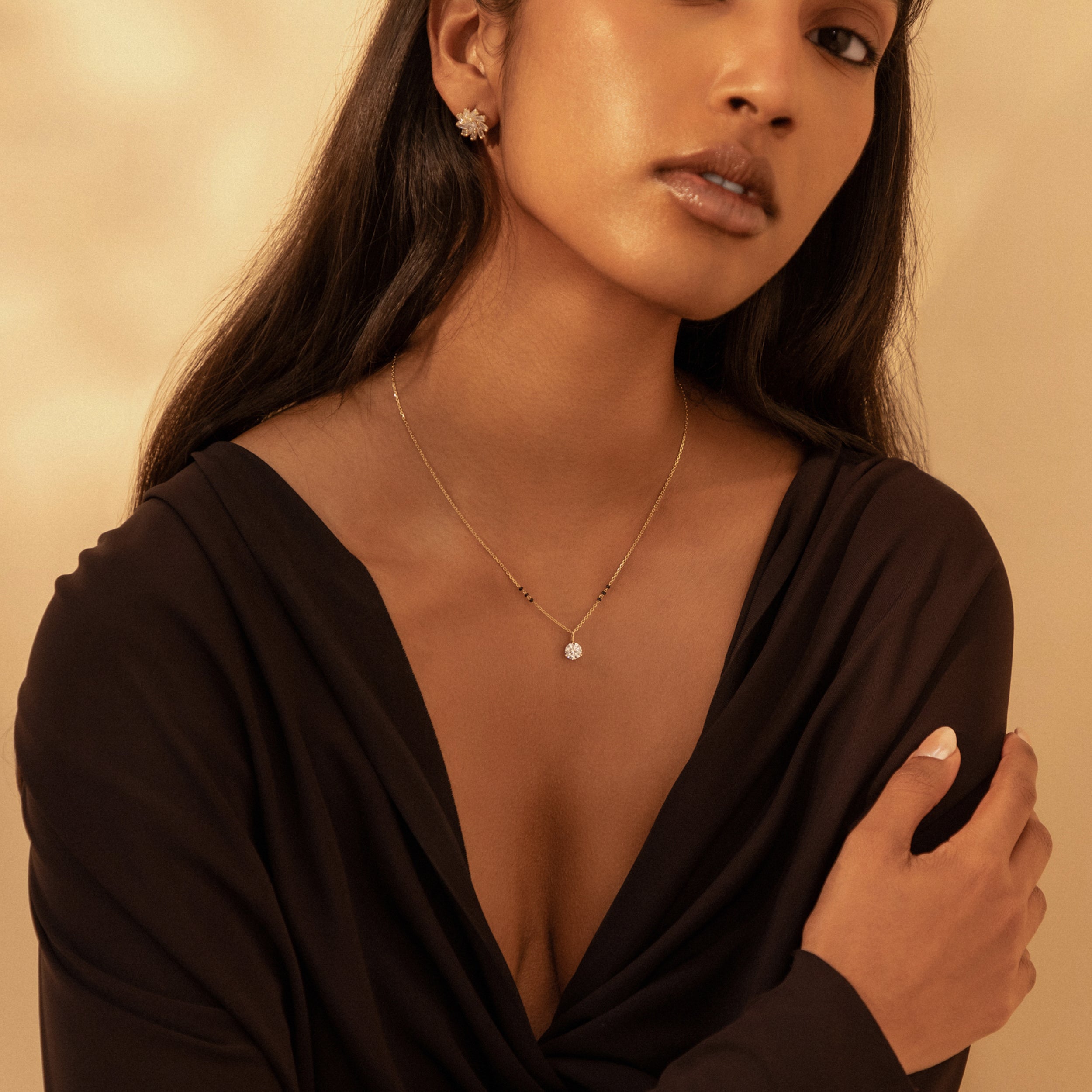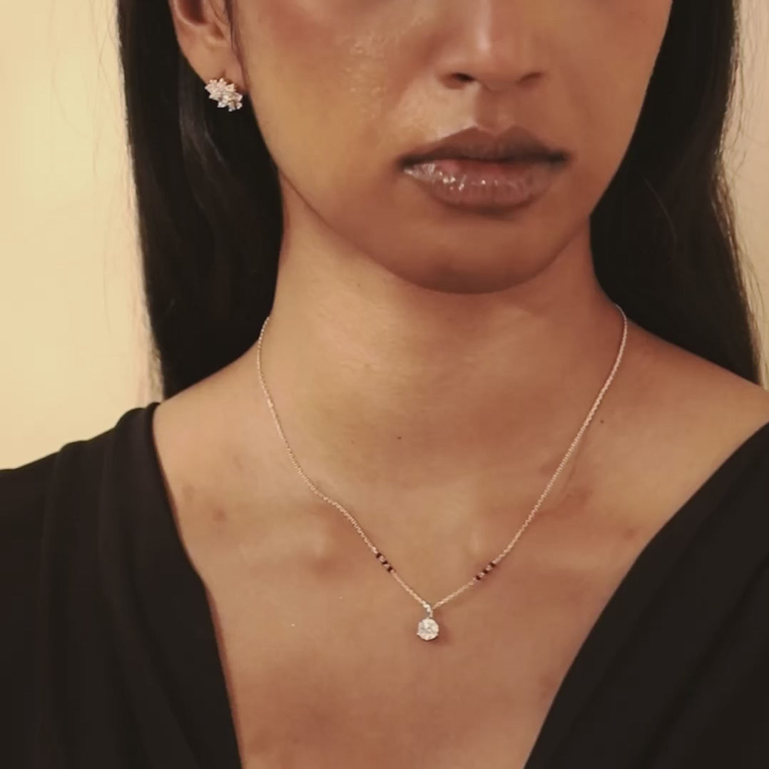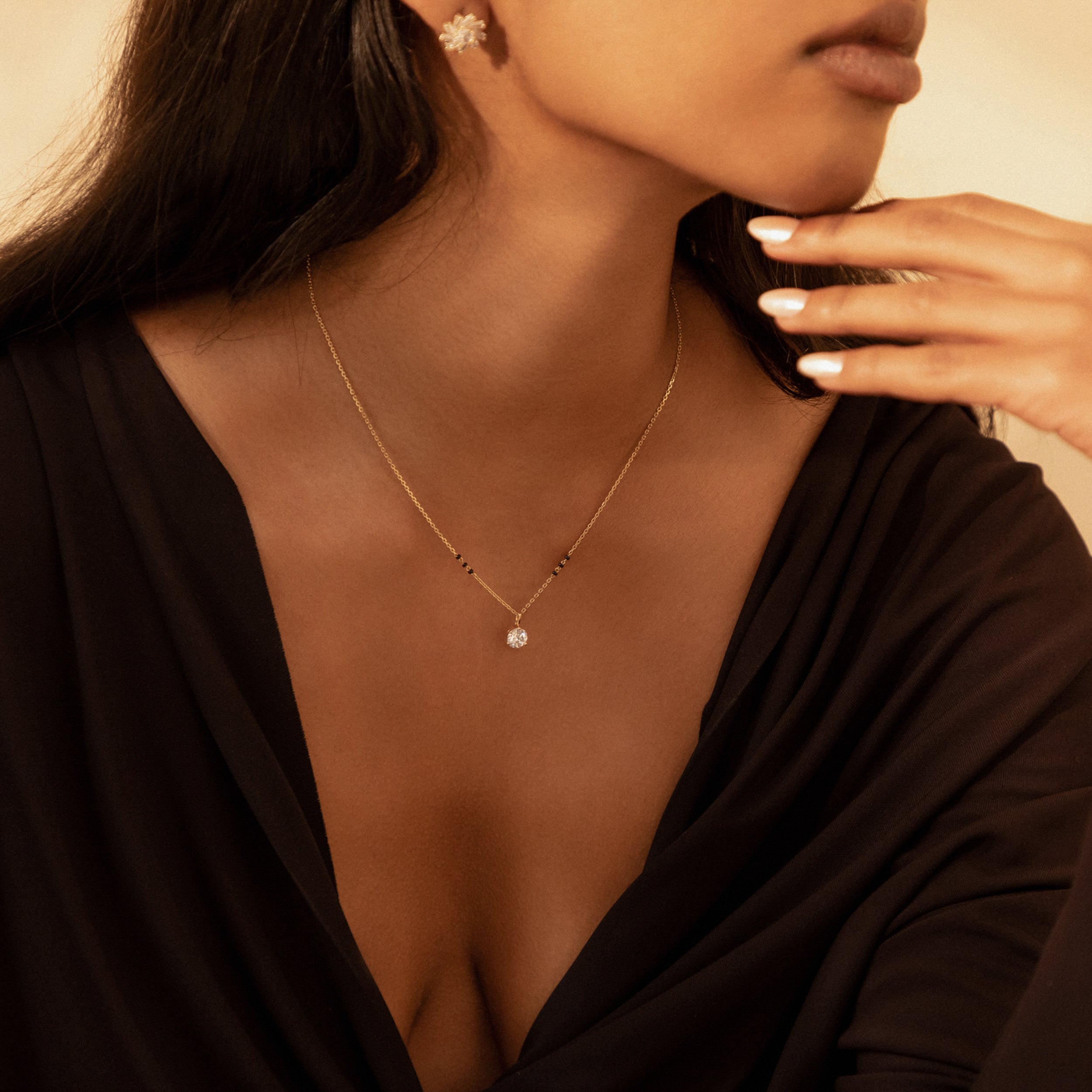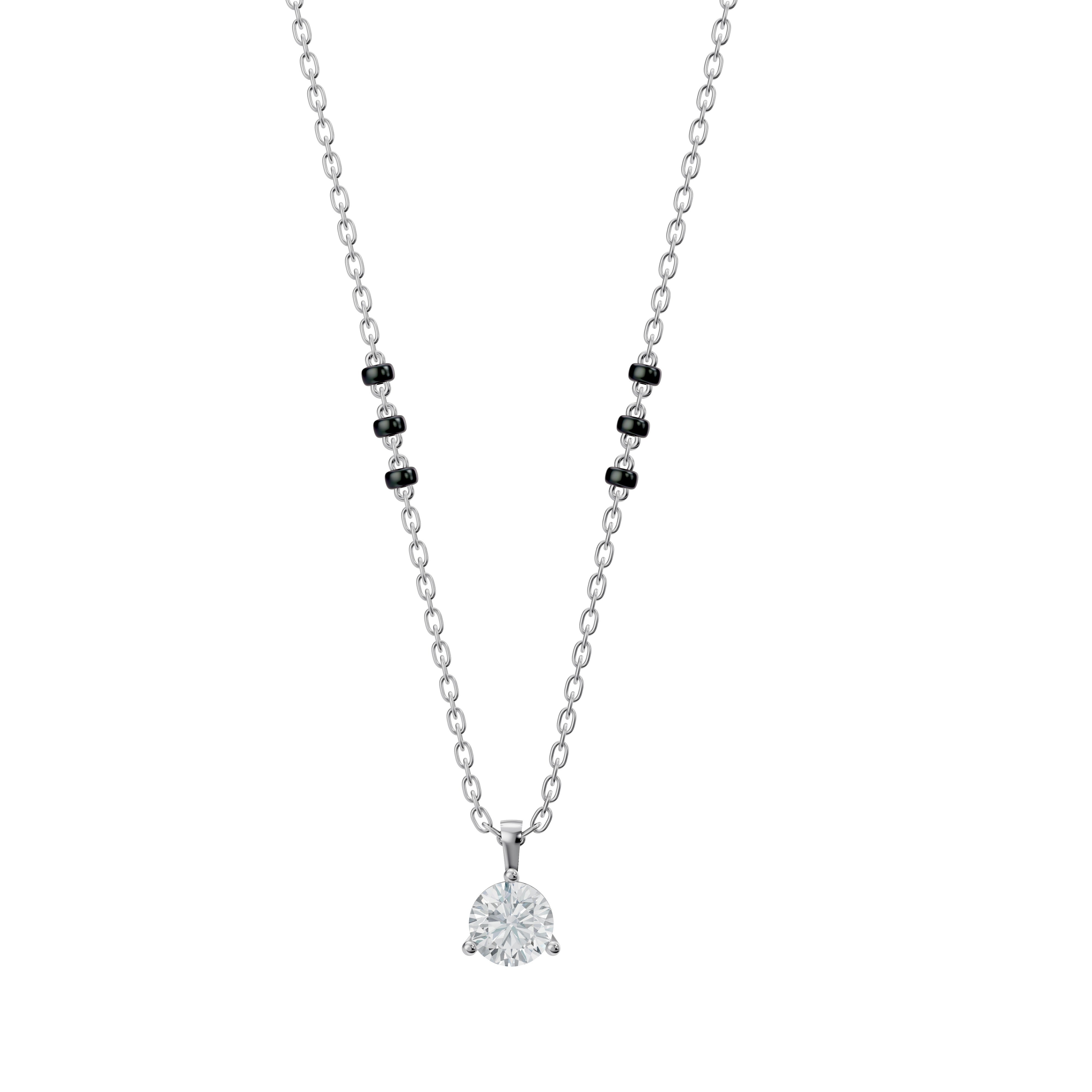 Unveil the essence of elegance with the Sohini Mangalsutra, where classic heritage meets cutting-edge style. Featuring a dazzling round brilliant certified lab-grown diamond nestled in a bail pendant, this piece offers a range of sizes and grades for a truly customized experience.