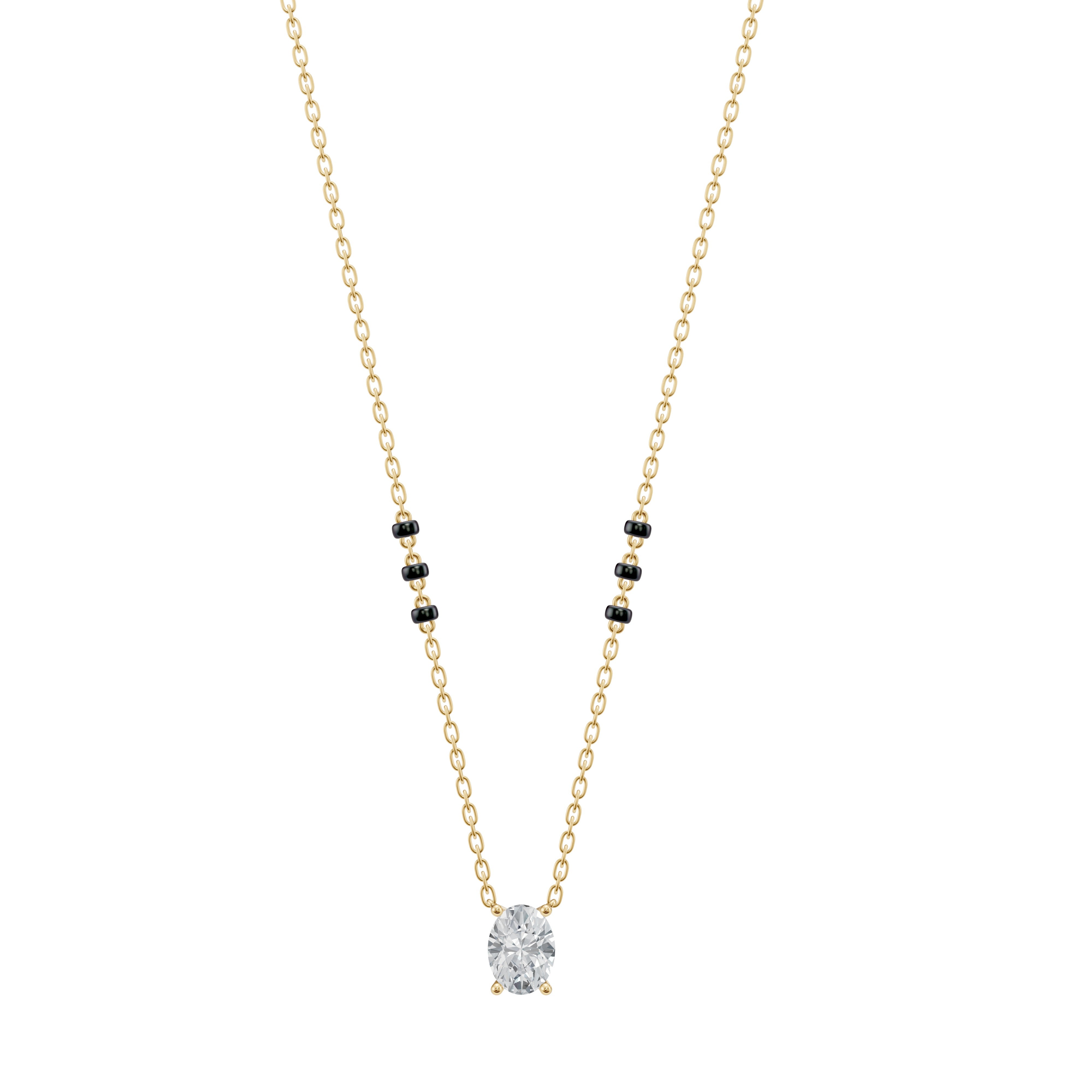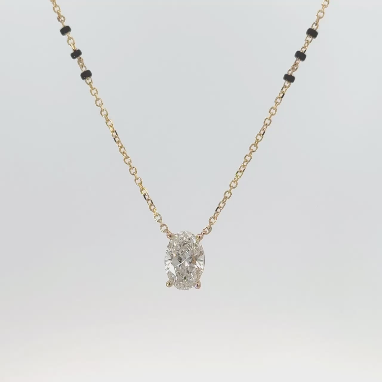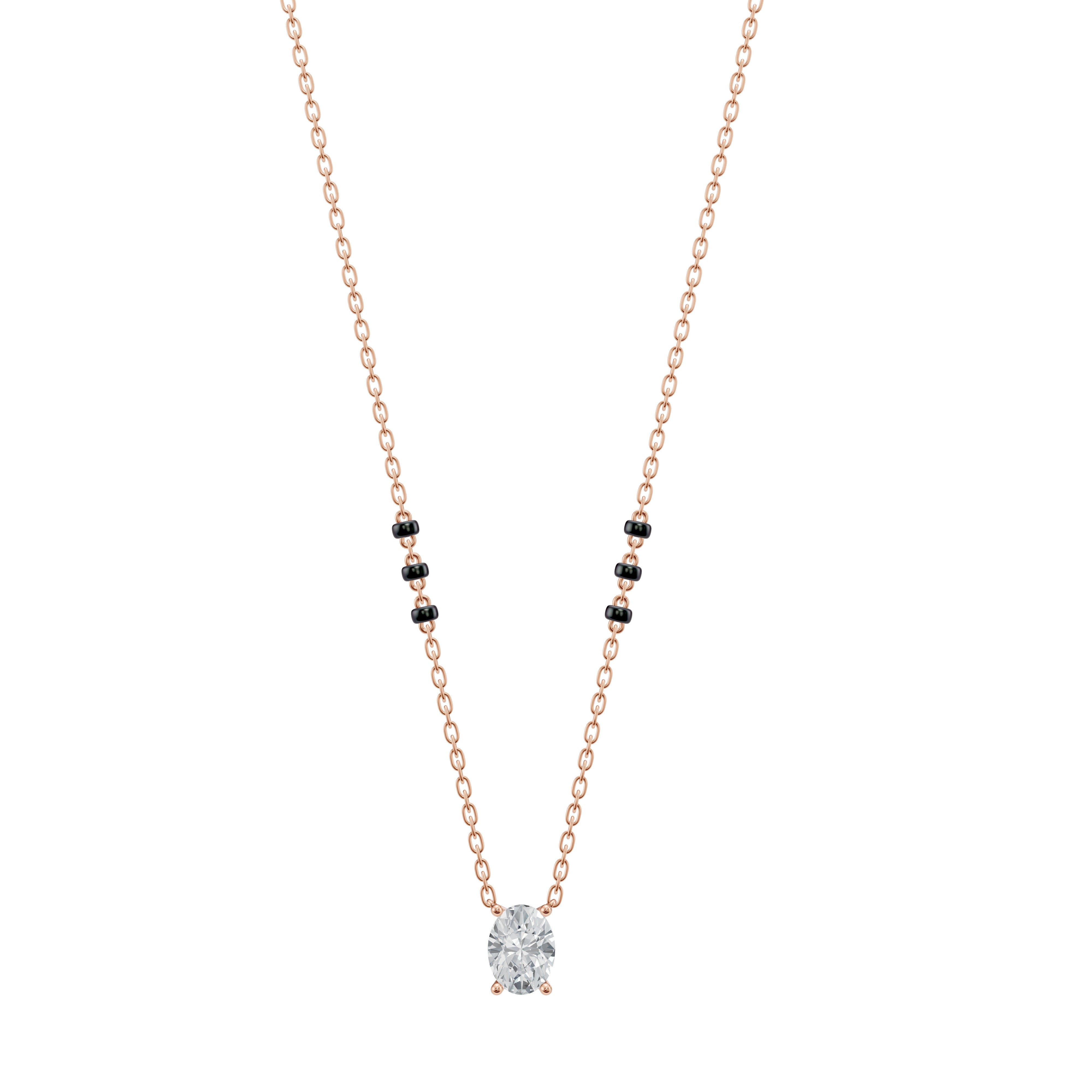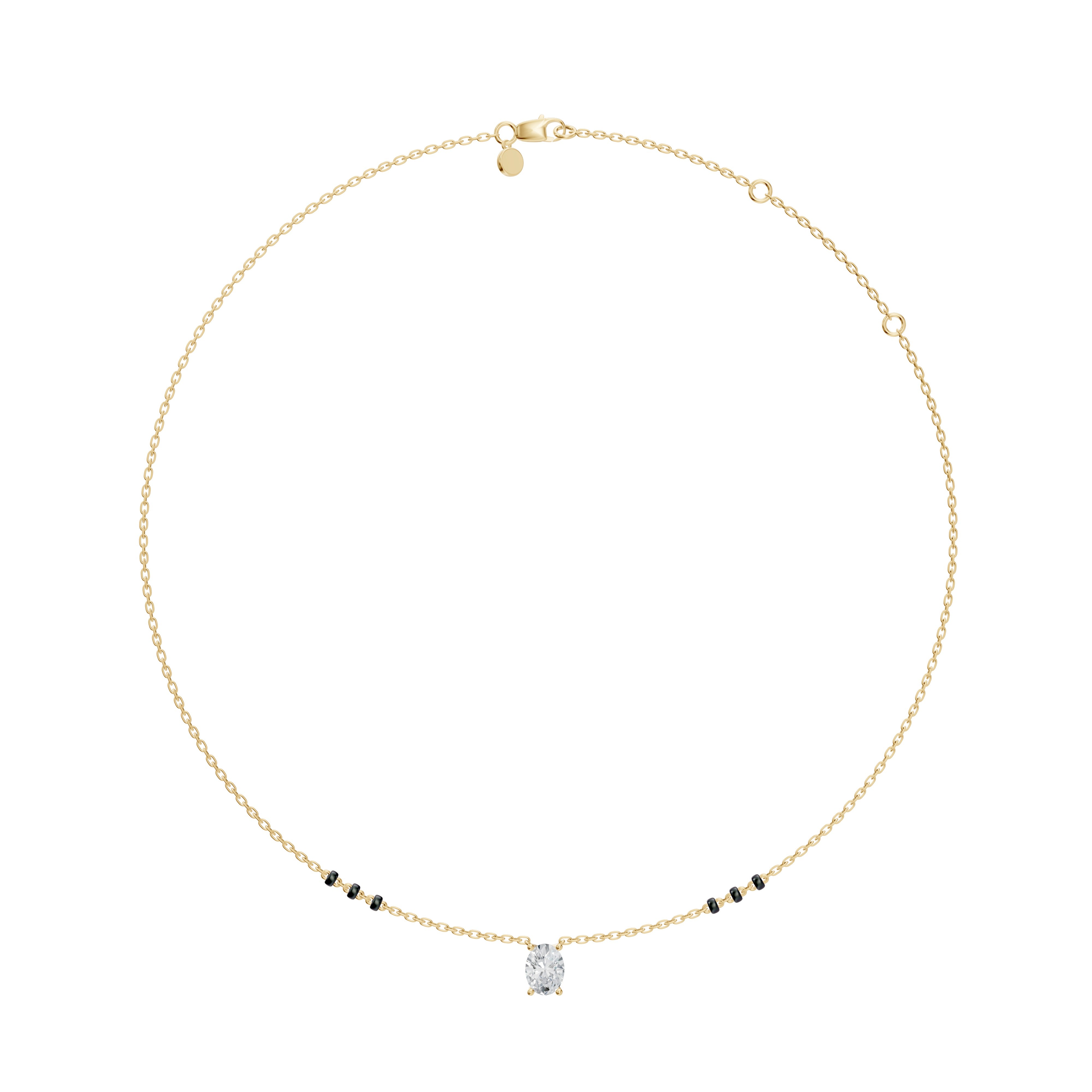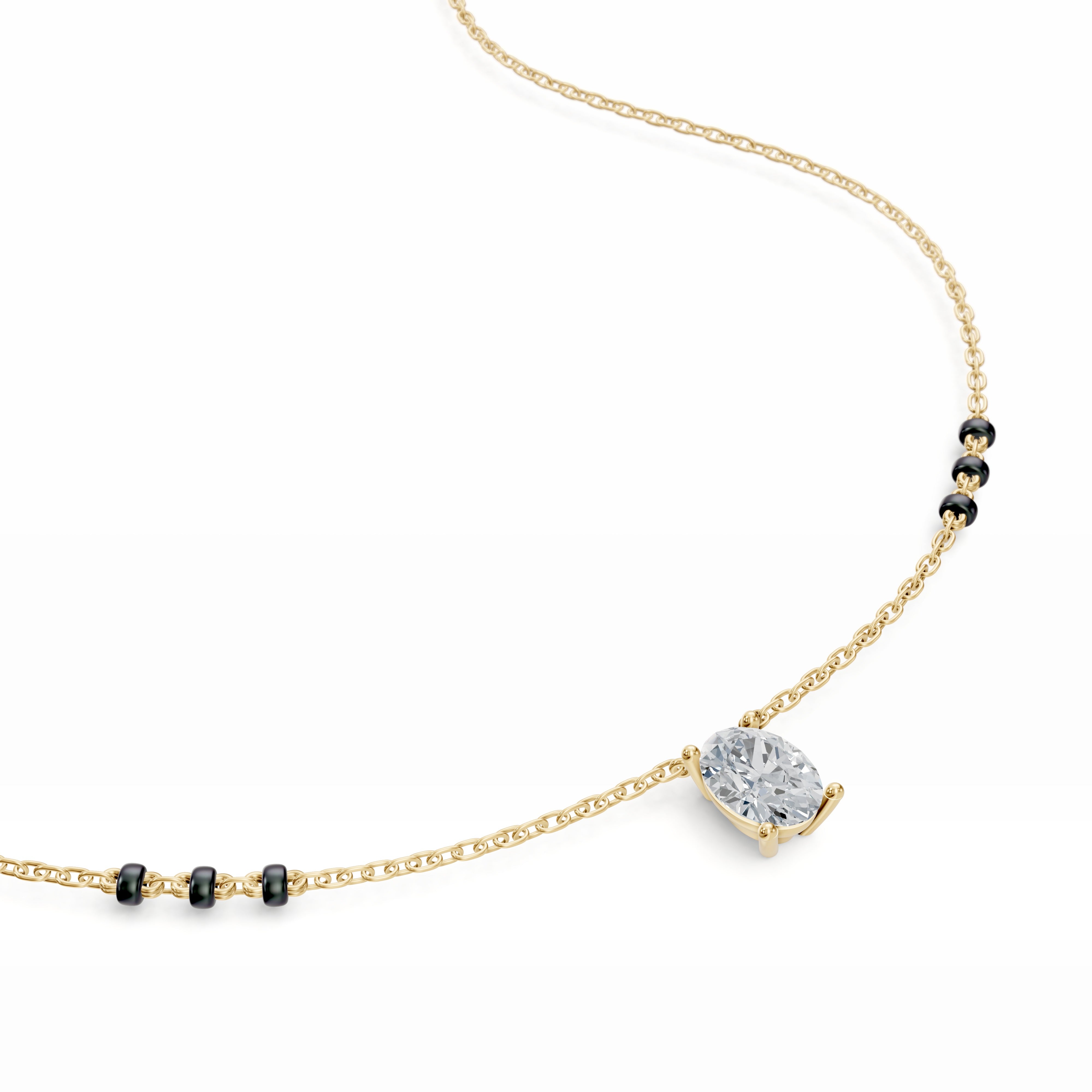 Meet the Suhani Mangalsutra—a bold fusion of timeless tradition and modern flair. This standout piece features a stunning vertically-set oval certified lab-grown diamond, showcased in a sleek fixed pendant and available in various sizes and grades.