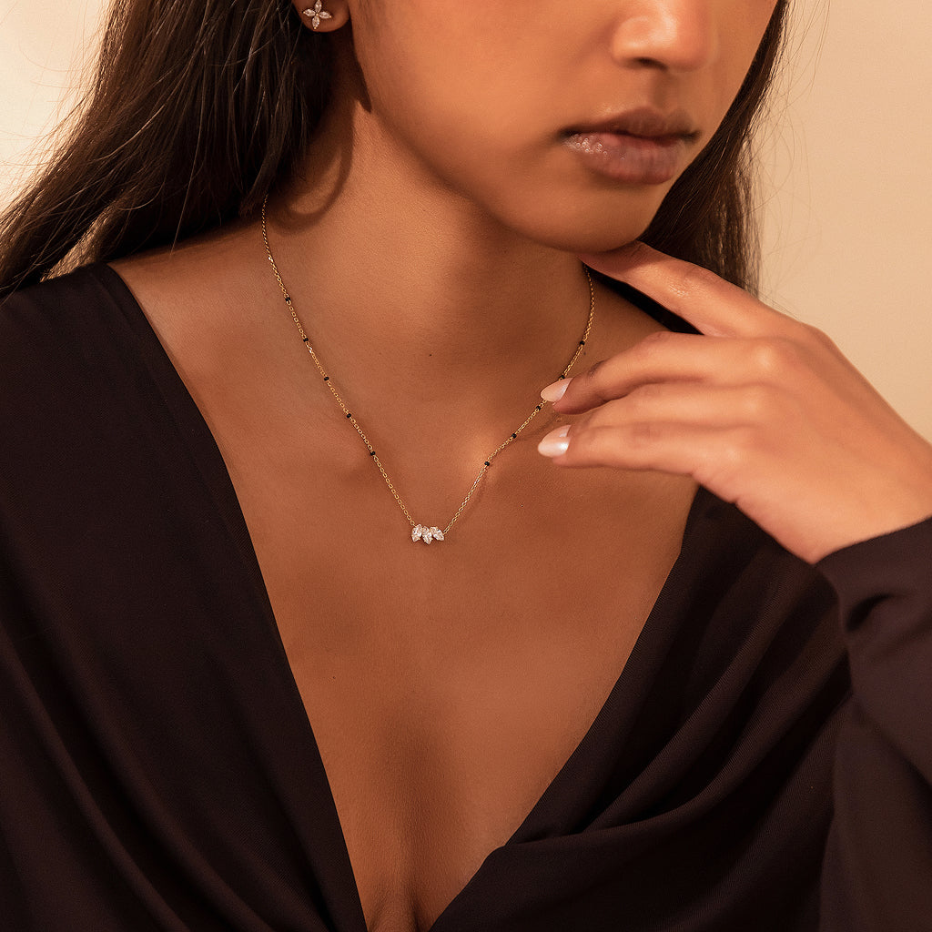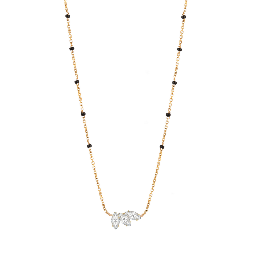 - The Vanisha Mangalsutra features three 0.25 carat lab grown marquise diamonds with a total carat weight of 1 carat.